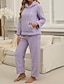Femmes Loungewear Ensemble Pyjama Mode Occasionnel Couleur Unie Avec Poches Taille Élastique Pantalon Vacances Maison manche longue Col ras du cou Violet Automne Hiver Coupe régulière