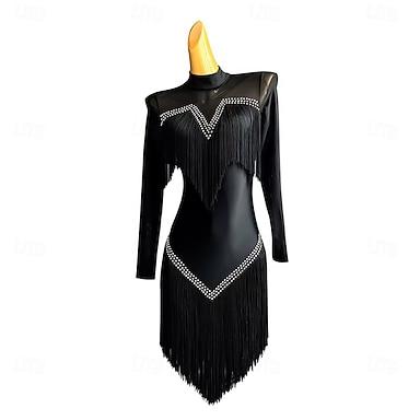 Danse Latine Robe Strass Gland Femmes Entraînement Performance manche longue Spandex Polyester