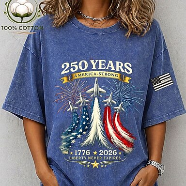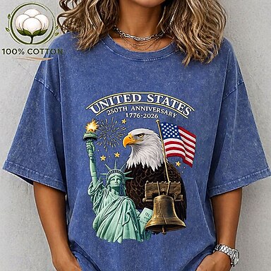 Jour de l'Indépendance Américaine Femmes T-shirt Chemise en coton Hauts effet délavé vintage Imprimé Graphique Drapeau Élégant Basique Classique Manche Courte Col ras du cou Hauts Réguliers