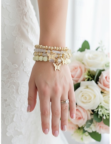 Ensemble de bracelets à breloques papillon en perles - Design élégant en couches d'or et de perles pour femmes