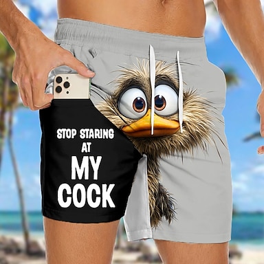 Homme Drôle Canard Argot drôle Short doublé Short de bain 2 en 1 Shorts de bain Taille Moyenne Hawaïen Vacances à la Plage Poches Latérales Avec doublure de compression Taille élastique avec cordon