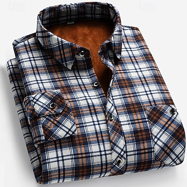 Homme Chemise Chemise Flanelle Surchemise Plaid Extérieur Plein Air Rouge Bleu Roi Violet Orange manche longue Capuche Hiver Printemps & Automne Vêtement Tenue