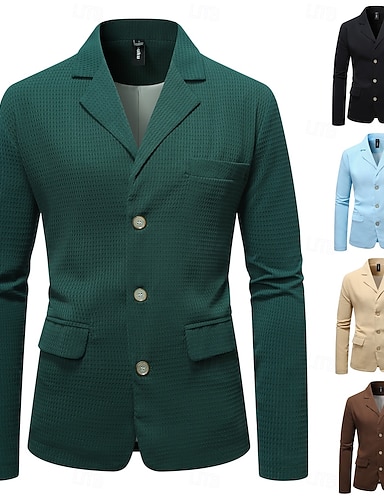 Blazer pour homme, col cranté, style classique décontracté, à carreaux, uni, en tissu gaufré, noir, bleu ciel, marron, coupe ajustée, simple boutonnage, trois boutons