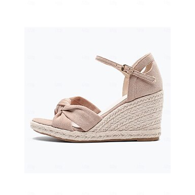 sandales espadrilles à bride arrière beiges pour femmes avec détail nœud – sandales compensées à bout ouvert décontractées pour l'été
