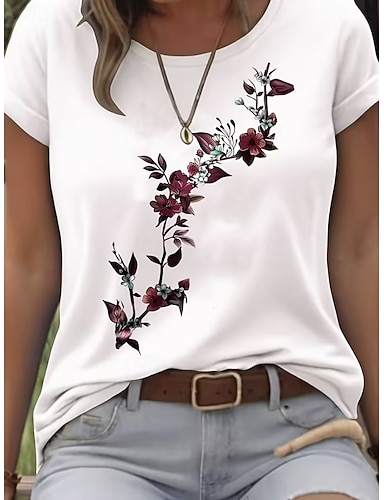 Femmes T-shirt Imprimé Fleuri Graphique Élégant Classique Occasionnel Manche Courte Col ras du cou Col rond Hauts Réguliers Quotidien Bleu Blanche Rose Claire Gris Été Printemps
