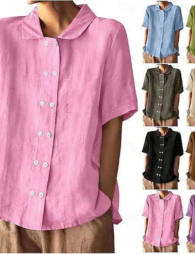 Femmes Chemise en lin Chemise d'été Chemise Boutonnée Faux coton lin Boutons Couleur Unie Uni Quotidien Élégant Occasionnel Manche Courte Col Rabattu Hauts Réguliers Fête Sortir Vêtements de vacances