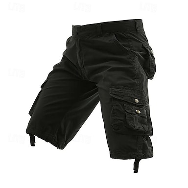Homme Shorts cargo Shorts Shorts d'été Multi-poches Poche à Rabat Uni Confort Portable Longueur Genou Extérieur Sport Quotidien Mode Occasionnel Noir Kaki