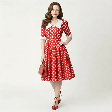 Élégant ancien Années 1950 Robe Coupe ajustée et évasée Déguisement Femmes Noël Carnaval Saint-Valentin Soirée Occasionnel Adultes Printemps & Été