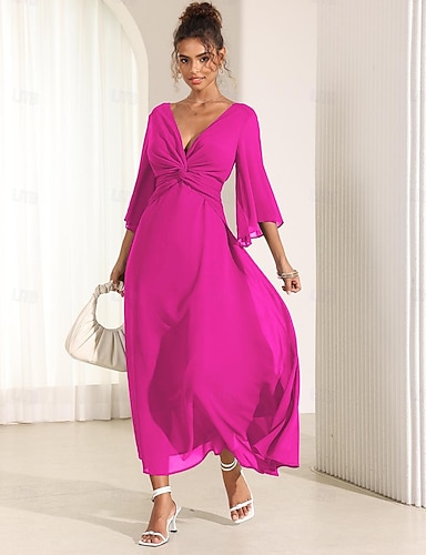 Femmes Robe maxi Robe en Chiffon Robe Décontractée Robe évasée Élégant Mode Moderne Extérieur Vacances Sortir Coupe régulière Uni Manche Courte Col en V Bleu Vert Claire Rose Claire Rouge Bordeaux