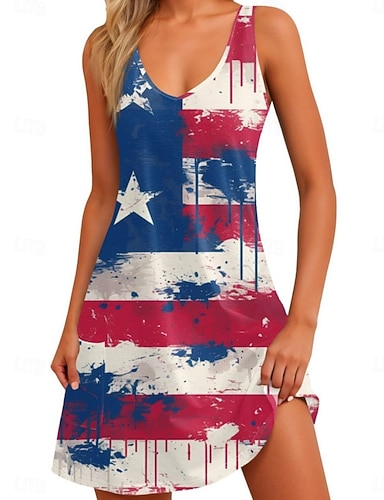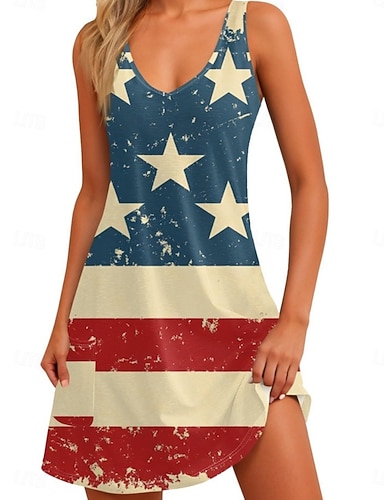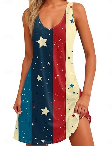 Journée de l'Indépendance Femmes Mini Robe Robe Décontractée Robe Nuisette Mode Classique Moderne Extérieur Vacances Sortir Coupe régulière Étoiles et rayures Sans manches Col en V Bleu Rouge Bleu
