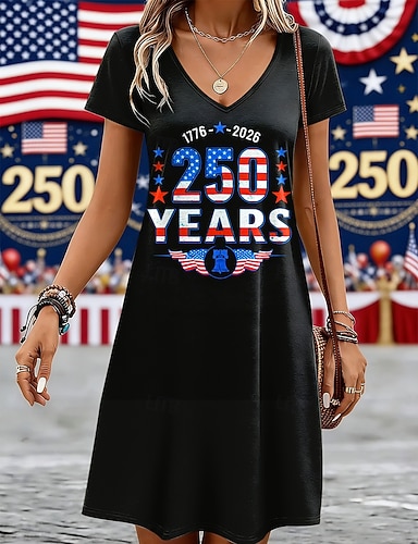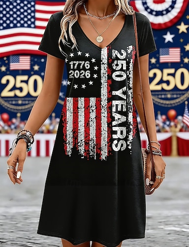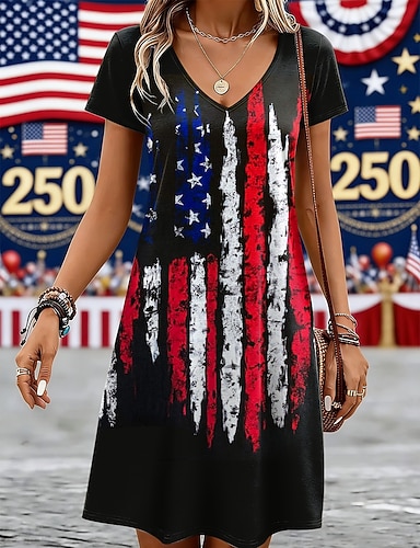 Jour de l'Indépendance Américaine Femmes Mini Robe Robe T-Shirt Robe trapèze Occasionnel Quotidien Coupe régulière Graphique Drapeau Américain Manche Courte Col en V Bleu Blanche Rouge Été Printemps