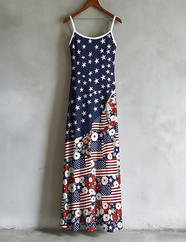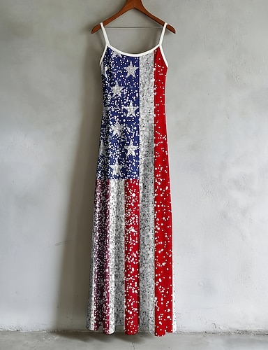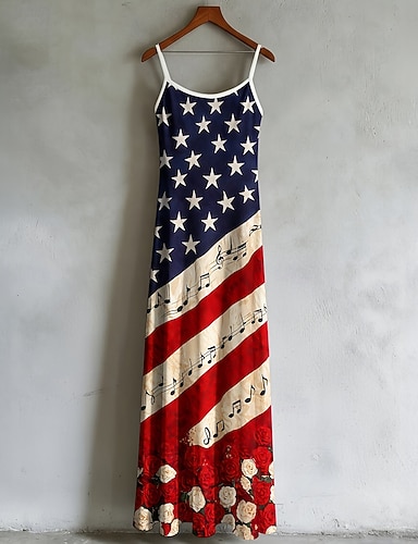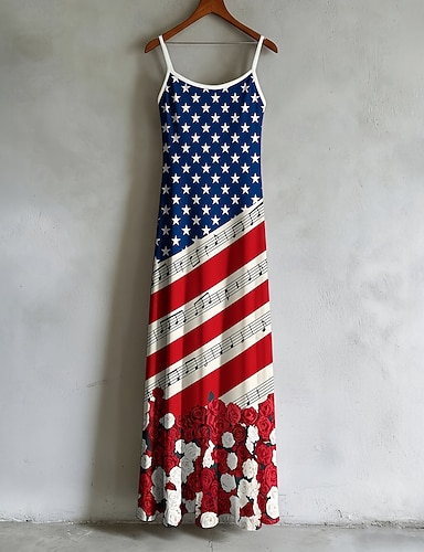 Journée de l'Indépendance Femmes Robe maxi Robe Décontractée Robe Imprimée Classique Moderne Quotidien Extérieur Vacances Coupe régulière Étoiles et rayures manche longue Col en V Bleu Rouge Vert