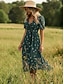 Femmes Robe Midi Robe en Chiffon Robe Décontractée Robe Fleurie Élégant Mode Moderne Extérieur Vacances Sortir Coupe régulière Uni Manche Courte Col carré Noir Jaune Rouge Vert Été Printemps