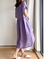 Femmes Robe Midi Robes en coton et lin Robe Chemise Robe Décontractée Élégant Mode Moderne Quotidien Extérieur Vacances Coupe Ample Uni Demi Manches Col de chemise Bleu Noir Rouge Violet Été Printemps