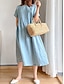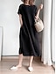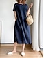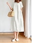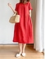 Femmes Robe Midi Faux coton lin Robe Décontractée Élégant Mode Moderne Quotidien Extérieur Vacances Coupe Ample Uni Manche Courte Col ras du cou Noir Blanche Rouge bleu marine Été Printemps
