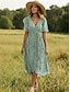 Femmes Robe Midi Robe trapèze Robe élastique Robe à Volants Vacances Occasionnel Fête Date Coupe régulière Fleuri Graphique Manche Courte Col en V Bleu Rouge Violet Vert Été Printemps