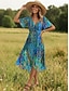 Femmes Robe Midi Robe trapèze Vacances Occasionnel Boho Coupe régulière Graphique Géométrique Manche Courte Col en V Bleu Rouge Violet Vert Été Printemps