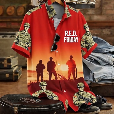 Homme Drapeau Américain 4 juillet, 250e anniversaire des États-Unis anciens combattants Chemise Chemise Décontractée Chemise à col cubain Manche Courte Militaire de l'armée Vêtements de rue Fête Ét