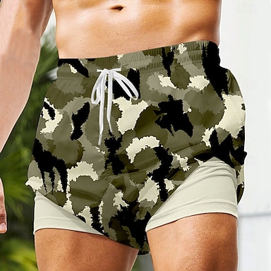 Shorts de loisirs à motifs foi pour hommes shorts doublés 2 en 1 shorts de bain taille mi-haute vintage rétro vacances streetwear poches latérales avec doublure de compression taille élastique à