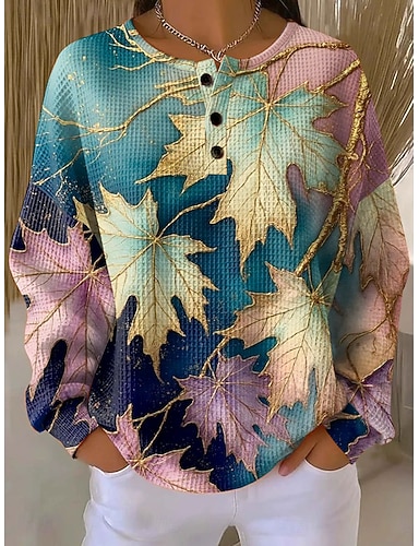 Femmes Sweatshirt Pull Boutons Imprimé Fleuri Graphique ancien Occasionnel manche longue Col ras du cou Hauts Réguliers Occasionnel Rue Tenue Quotidienne Bleu Jaune Rose Claire Violet Printemps