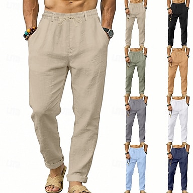 Homme Pantalons en Lin Pantalons Pantalon d'été Pantalons Amples Pantalons de Plage Cordon de serrage Taille Élastique Jambe Droite Uni Confort Respirant Longueur complète Occasionnel Quotidien
