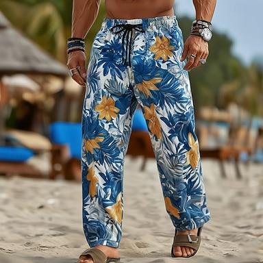 Homme Imprimé Floral Fleurs tropicales Pantalons Pantalons Amples Pantalon décontracté Taille Moyenne Hawaïen Extérieur Vacances Tenue de plage Taille élastique avec cordon de serrage Pantalon en lin