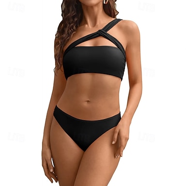 Maillot de bain femme bikini 2 pièces épaule unique taille haute mince dos nu vêtements de plage vacances floral décolleté asymétrique sans manches