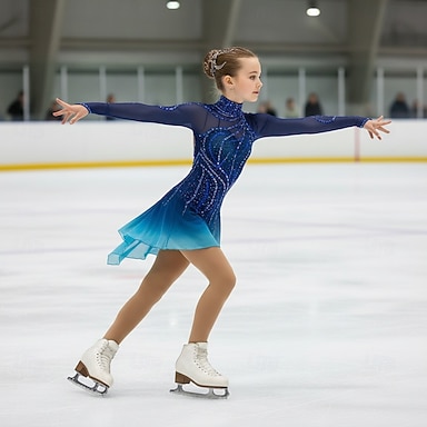 Robe de patinage artistique Fille Patinage Robe Bleu de minuit Patchwork Dos Nu Élastique Entraînement Compétition Tenue de Patinage Classique cristal pailleté manche longue Patinage sur glace