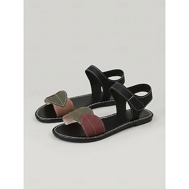 Sandales plates beiges bicolores pour femme – bride cheville ajustable, bout ouvert, chaussures décontractées, légères et parfaites pour l'été, idéales pour les voyages, les promenades en ville et le