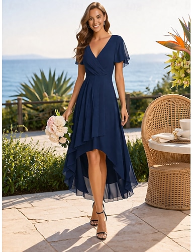 Robes de Quinceanera A-Line Élégante Robe de performance Mariage Longueur de sol Sans manches Décolleté en V Chiffon avec plis
