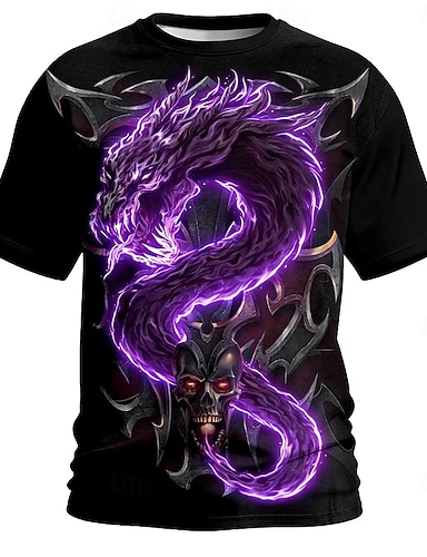 T-shirt homme imprimé intégral tête de dragon lumineuse, style tribal fantasy gothique rock, manches courtes, col rond, coupe classique, décontracté, streetwear, vêtements de créateur, tailles S, M,