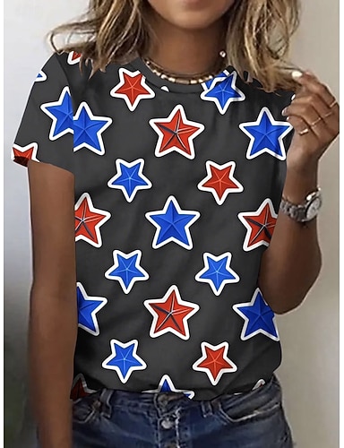 Jour de l'Indépendance Américaine Femmes T-shirt Imprimé Graphique Drapeau Etoile Élégant Classique Occasionnel Manche Courte Col ras du cou Col rond Hauts Réguliers Quotidien Noir Blanche Rouge Ét