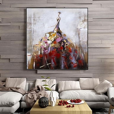 Fait à la main peint à la main peinture à l'huile mur robe rouge femmes peinture décoration de la maison décor toile roulée pas de cadre non étiré