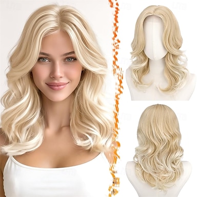 perruques ondulées blondes blanches longues ombre pour femmes perruque bouclée synthétique naturelle perruques en fibres résistantes à la chaleur pour les perruques de fête de Noël cosplay quotidien