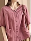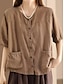 Femmes Chemisier Chemise en faux lin Avec Poches Boutons Couleur Unie Quotidien Occasionnel Demi Manches Col ras du cou Hauts Réguliers Quotidien Noir Blanche Rose Claire Marron Vert Été Printemps