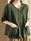 Femmes Chemisier Chemise en faux lin Couleur Unie Élégant Occasionnel Manche 3/4 Col ras du cou Hauts Réguliers Quotidien Bleu Blanche Vert Claire Été Printemps Automne