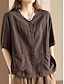Femmes Chemisier Faux coton lin Dentelle Boutons Couleur Unie Élégant Occasionnel Manche 3/4 Col en V Hauts Réguliers Quotidien Bleu Noir Blanche Rose Claire Orange Printemps Automne