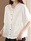 Femmes Chemise Chemisier Faux coton lin Boutons Uni Actif Élégant Manche Courte Col ras du cou Hauts Réguliers Quotidien Fête Sortir Blanche Jaune Rose Été Printemps