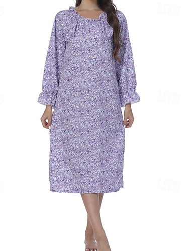 Femmes Pyjamas Loungewear Mode Occasionnel Fleuri A Volants Robes Vacances Maison manche longue Col ras du cou Violet Printemps Automne Hiver Coupe régulière