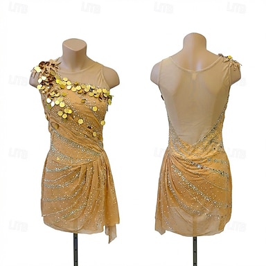 Veste polaire de patinage artistique Robe de patinage artistique Femmes Patinage Robe Dorée Patchwork Dos Nu Élastique Entraînement Compétition Tenue de Patinage Classique cristal pailleté Sans