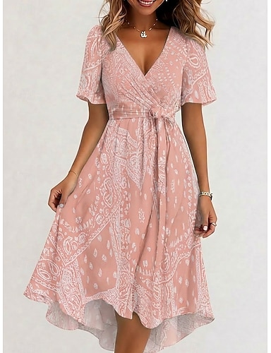 Femmes Robe Midi Robe trapèze Robe élastique Robe à Volants Vacances Occasionnel Fête Date Coupe régulière Fleuri Graphique Manche Courte Col en V Bleu Rose Claire Vert Été Printemps