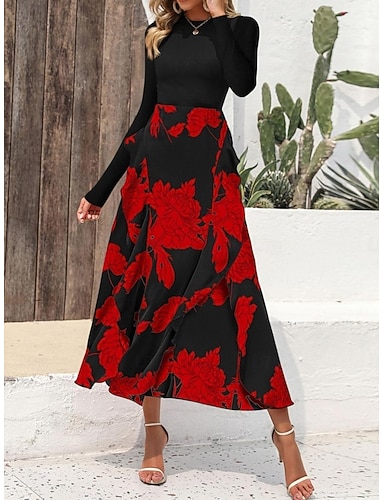 Femmes Robe Midi Robe Décontractée Robe trapèze Robe Fleurie Élégant Mode Moderne Extérieur Vacances Sortir Coupe régulière Fleuri manche longue Col ras du cou Blanche Rouge Vert Printemps Automne