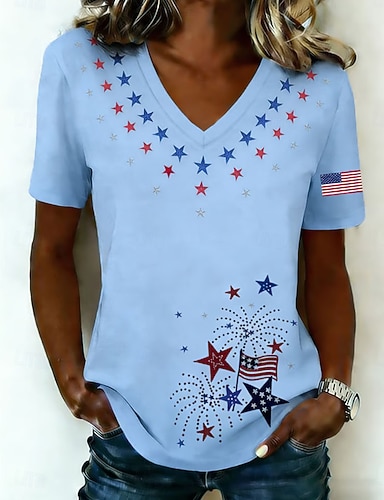 Jour de l'Indépendance Américaine Femmes Normal Robe Midi Robe d'Été Robe T-Shirt Élégant ancien Plage Coupe régulière Graphique Drapeau Manche Courte Col ras du cou Bleu Blanche Rouge Été Printemps