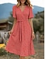 Femmes Robe Midi Robe trapèze Robe élastique Robe à Volants Vacances Occasionnel Manches Evasées Fête Date Coupe régulière Fleuri Graphique Manche Courte Col en V Rouge Été Printemps