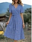 Femmes Robe Midi Robe fourreau Vacances Occasionnel Boho Quotidien Robe d'Été Robe de Printemps Coupe régulière Fleuri Graphique Manche Courte Col en V Bleu Rouge claire Bleu Ciel Été Printemps