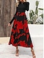 Femmes Robe maxi Robe bohème Robe Décontractée Robe trapèze Élégant Mode Moderne Extérieur Vacances Sortir Coupe régulière Fleuri manche longue Col en V Rouge Été Printemps