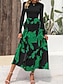 Femmes Robe Longueur Genou Robe Décontractée ancien Occasionnel Fête Coupe régulière Fleuri Graphique manche longue Col ras du cou Bleu Rouge Violet Vert Été Printemps