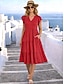 Femmes Robe Midi Robe trapèze Robe d'été Occasionnel Quotidien Coupe régulière Uni Manche Courte Col en V Rouge Été