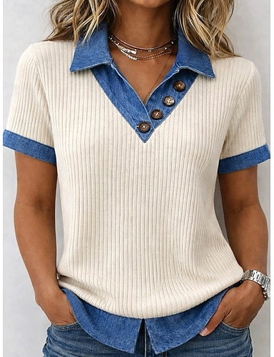 Femmes Tunique ancien Élégant Manche Courte manche longue Hauts Réguliers Quotidien Vêtements de rue Travail Beige Été Printemps