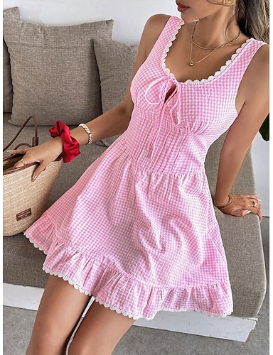 Femmes Mini Robe Robe Corset Robe trapèze Robe d'été Robe Nuisette Occasionnel Quotidien Plage Fête Coupe régulière Plaid Sans manches Col en U Bleu Rose Claire Été